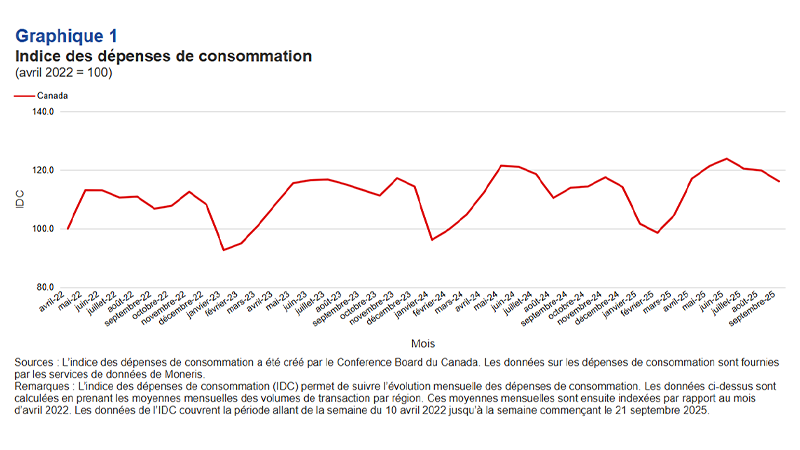 Dans le cadre de notre partenariat avec le Conference Board du Canada, nous avons le plaisir de présenter le commentaire fiable suivant de son indice des dépenses de consommation (IDC) qui est alimenté par les services de données de MonerisMD. Nos données de pointe sur les dépenses de consommation qui proviennent des activités aux points de vente et qui sont obtenues grâce à l’expertise du Conference Board du Canada fournissent une perspective canadienne sur les tendances économiques.